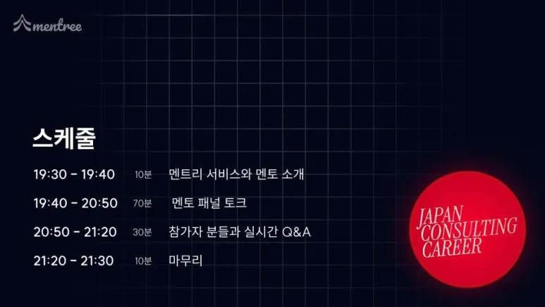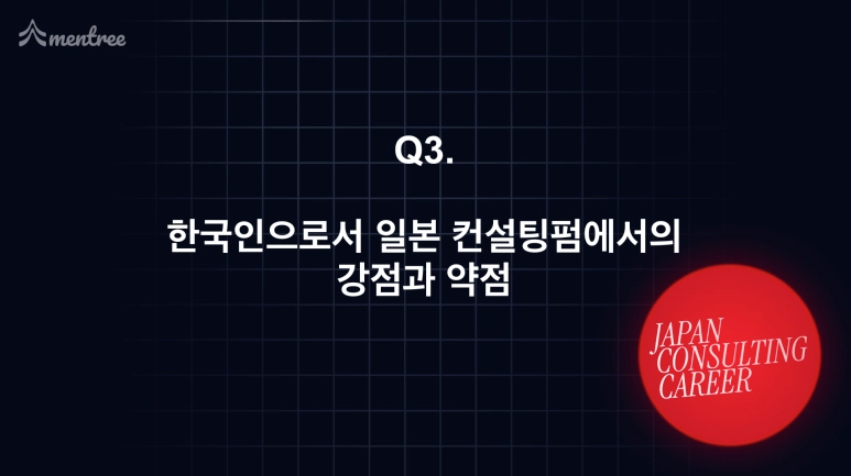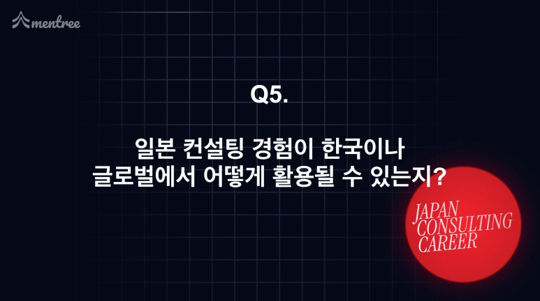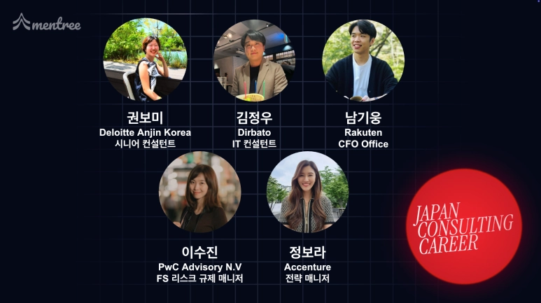 행사의 시작을 알린 멘토분들의 자기소개에서는 각자의 커리어 전환 계기와 일본 컨설팅 시장에서의 경험을 간략히 공유해 주셨고, 이를 통해 “해외에서 컨설턴트로 커리어를 시작한다는 것”이 현실적으로 어떤 의미인지 엿볼 수 있었습니다.