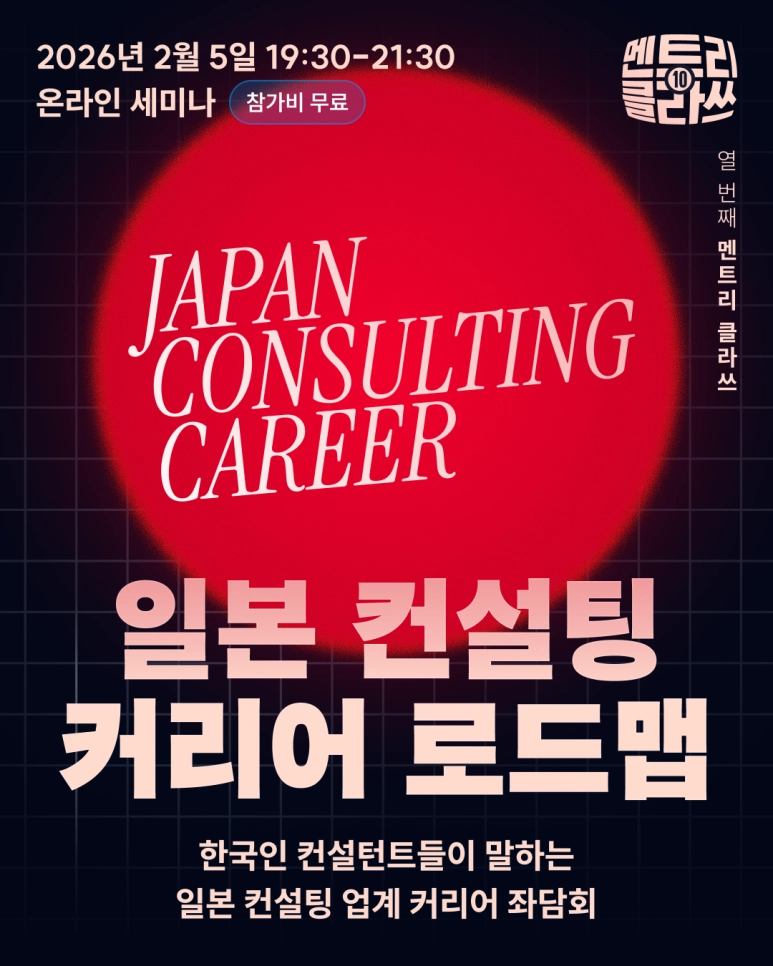 아쉽게도 이번 행사에 참여하지 못하신 분들은, 멘트리의 멘토링을 통해 실제 컨설턴트로 일하고 있는 멘토의 이야기를 직접 들어보며 컨설팅 커리어에 대한 이해를 한층 더 깊게 만들어 보시길 추천드립니다.